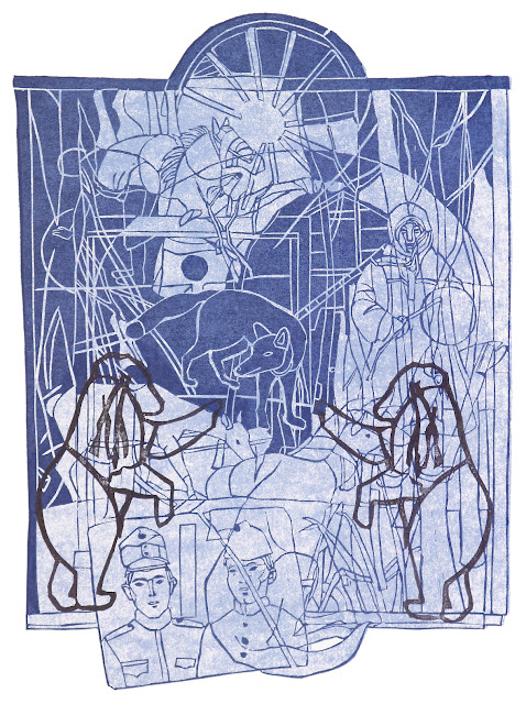 | Hubszugulból idehalló szél, 1989. színezett tollrajz |